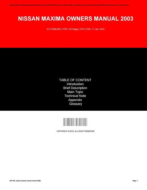 Read Online 2003 maxima owners manual Doc Library Genesis